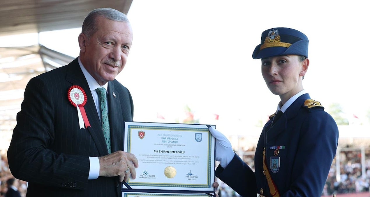 Hava Harp Okulu devre birincisi Teğmen Elif Emirmehmetoğlu diplomalasını Cumhurbaşkanı Erdoğan’ın elinden aldı.