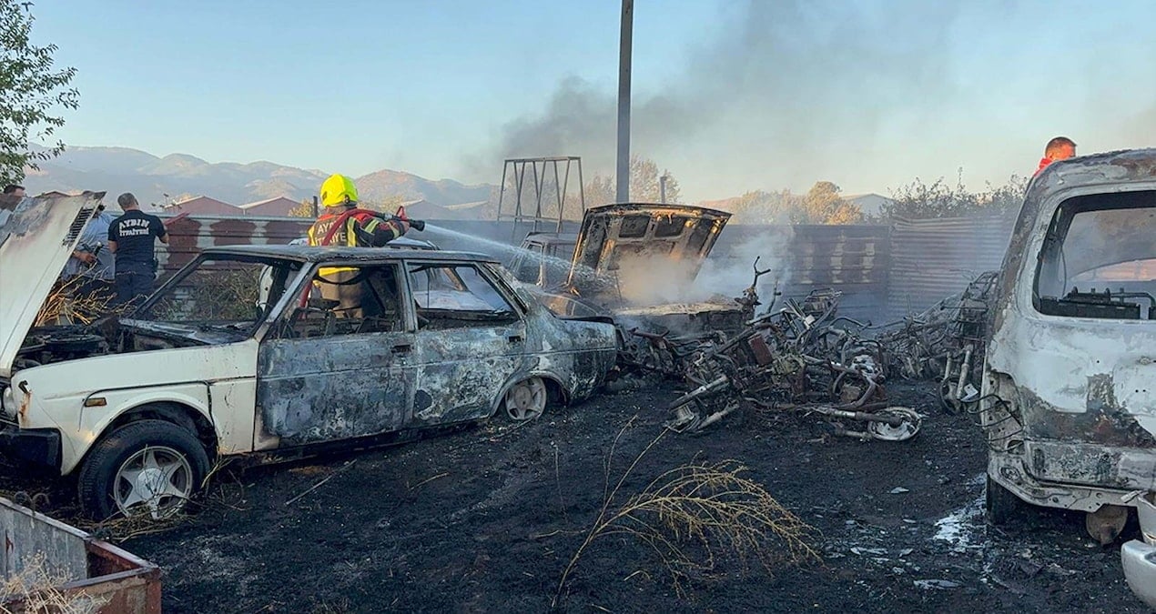 Aydın’da, yediemin deposunda çıkan yangında hurda 5 otomobil ve 30 motosiklet, kullanılmaz hale geldi.