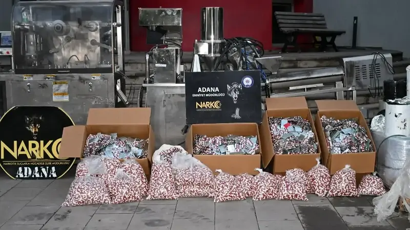 Adana’da 262 bin 473 sahte uyuşturucu etkili hap ve 833 kilo 500 gram uyuşturucu ham maddesi ele geçirilen operasyonda gözaltına alınan 8 zanlıdan 6’sı tutuklandı.