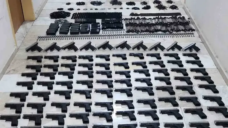 Hatay’ın Erzin ilçesinde polis ekipleri tarafından durdurulan otomobilin bagaj kısmında 90 adet ruhsatsız tabanca ve silah parçaları ele geçirildi.