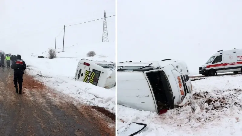 Kazada yaralanan sürücü ile 13 öğrenci, sağlık ekiplerince kentteki hastanelere kaldırıldı.