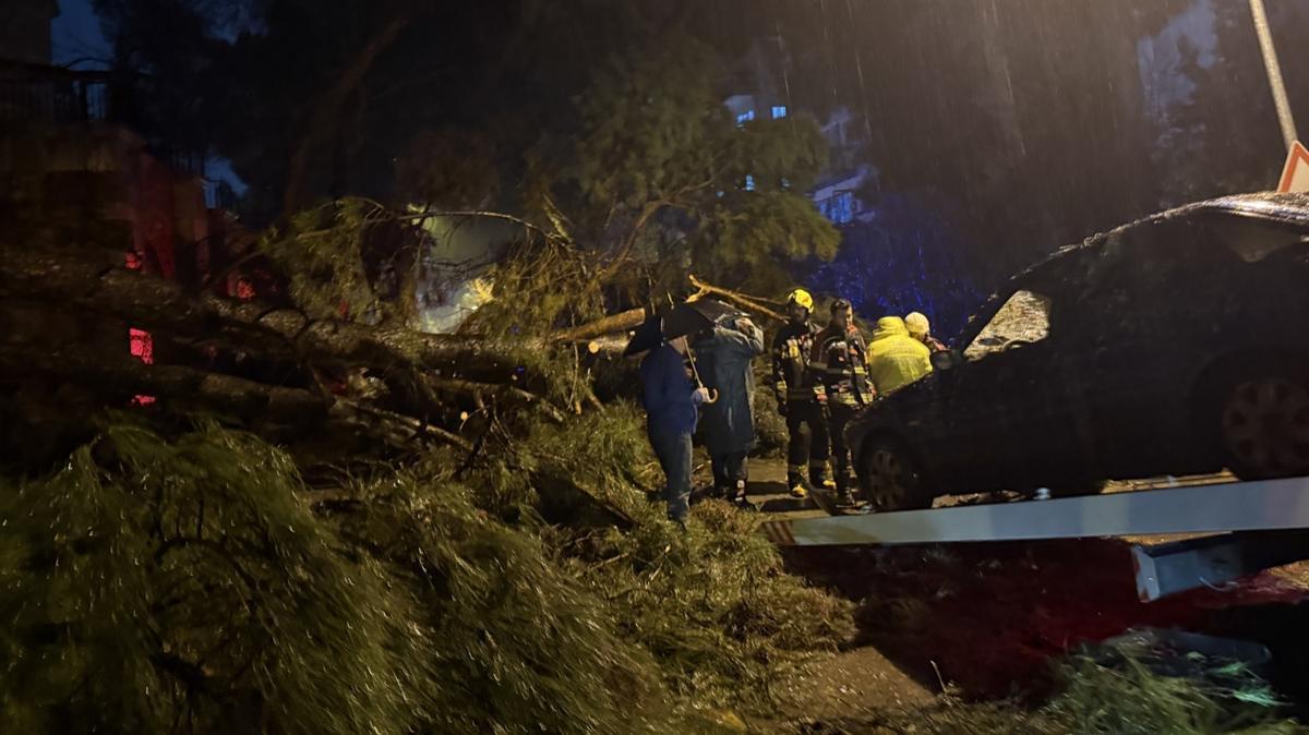 Köprülü Veysipaşa Mahallesi Çankaya Caddesi’nde A.D’nin kullandığı 09 EP 809 plakalı otomobilin üzerine çam ağacı devrildi.