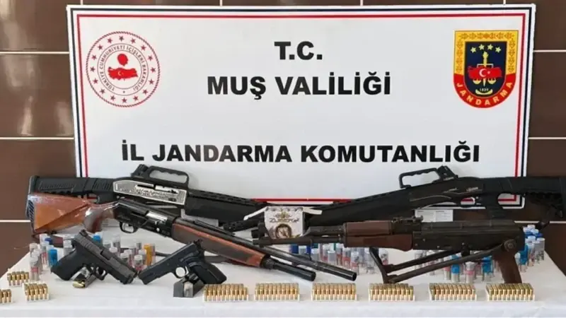 Muş’un Malazgirt ilçesinde jandarma ekiplerince düzenlenen operasyonda çok sayıda ruhsatsız silah ve mühimmat ele geçirildi, 6 şüpheli gözaltına alındı. Aramalarda 1 Kalaşnikof tüfek, 2 tabanca, 3 av tüfeği ile çeşitli mühimmatlara el konuldu.