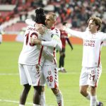 UEFA Konferans Ligi’ne tarihinde ilk kez katılan Samsunspor, Makedonya temsilcisi Shkendija’yı iki maç sonunda eleyerek adını son 16 turuna yazdırdı. Karadeniz temsilcisi deplasmandaki ilk karşılaşmayı Mouandilmandji’nin golüyle kazanırken, rövanşta ise sahasında adeta şov yaptı ve rakibini 4-0 mağlup etti. Kırmızı-beyazlılara galibiyeti getiren goller Ntcham, Ndiaye ve Mouandilmandji’den (2) geldi.